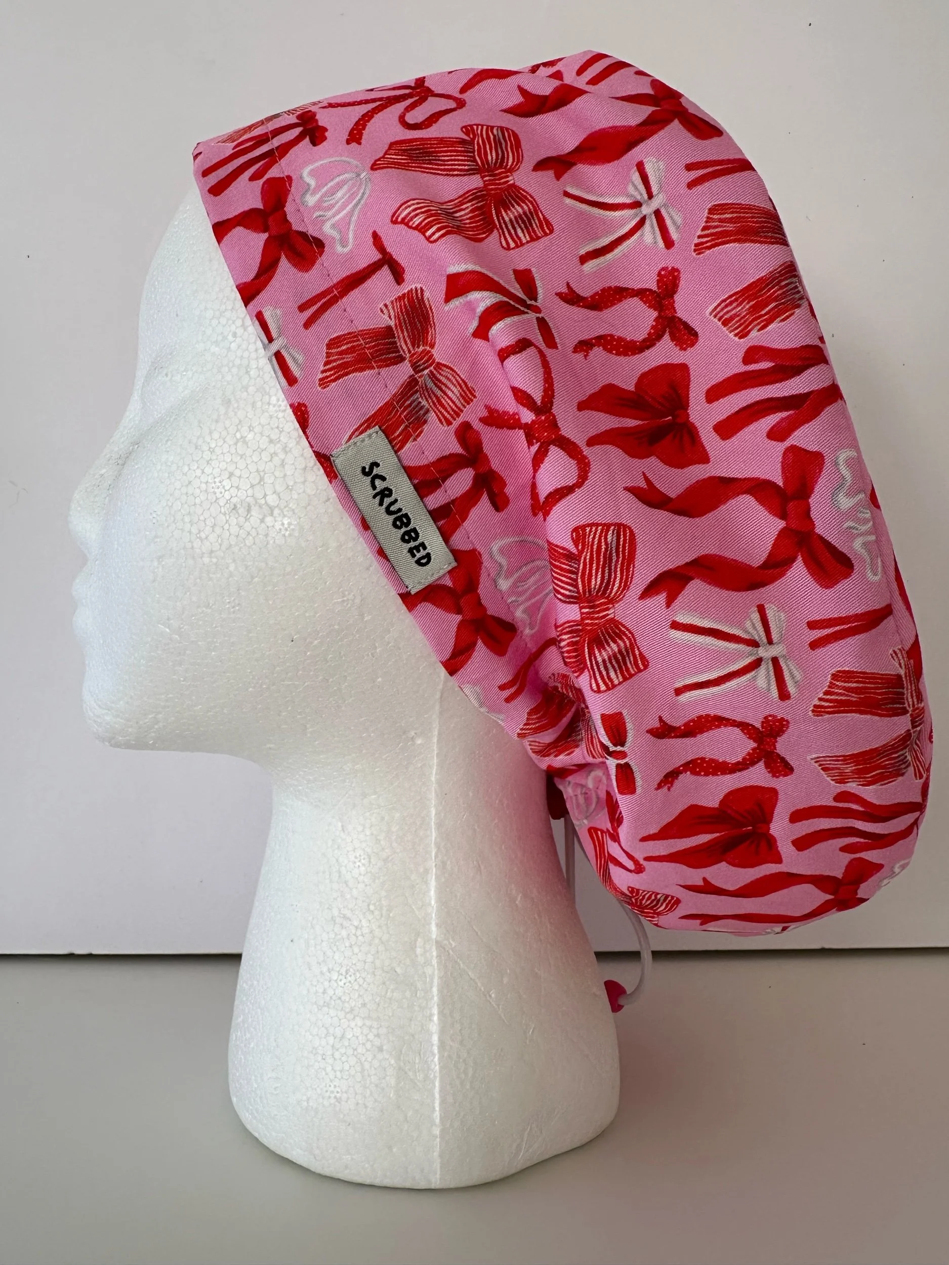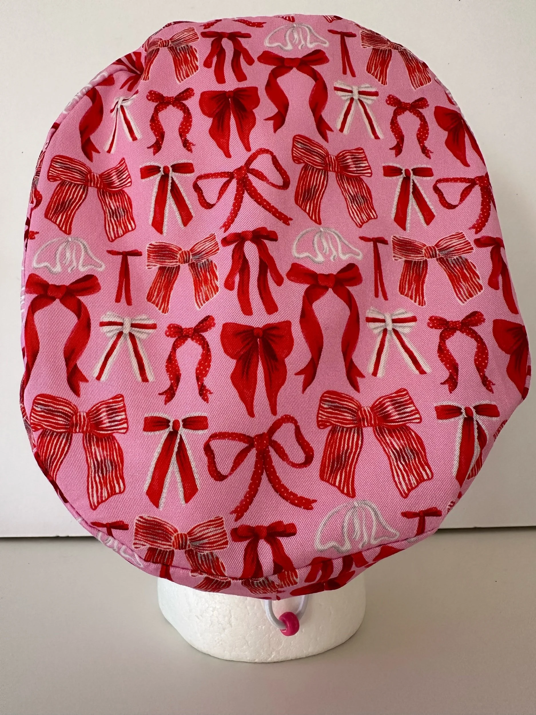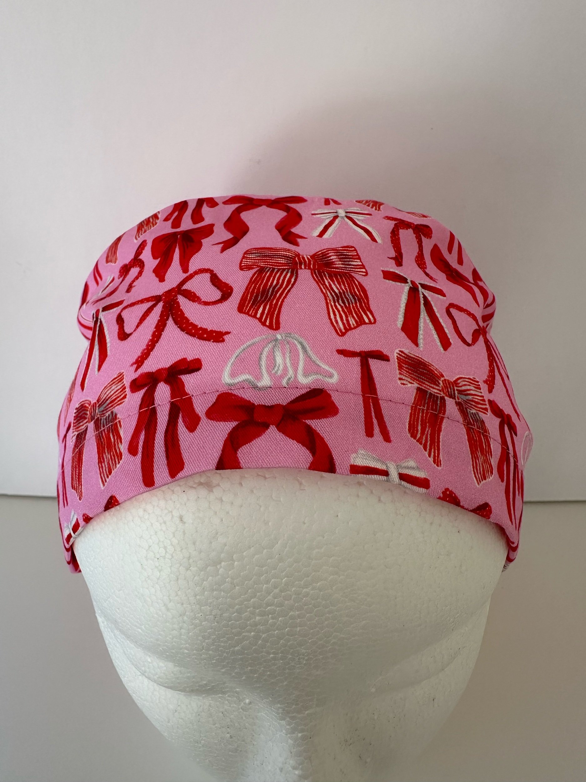 Christmas Bows Red elastic scrub hat
